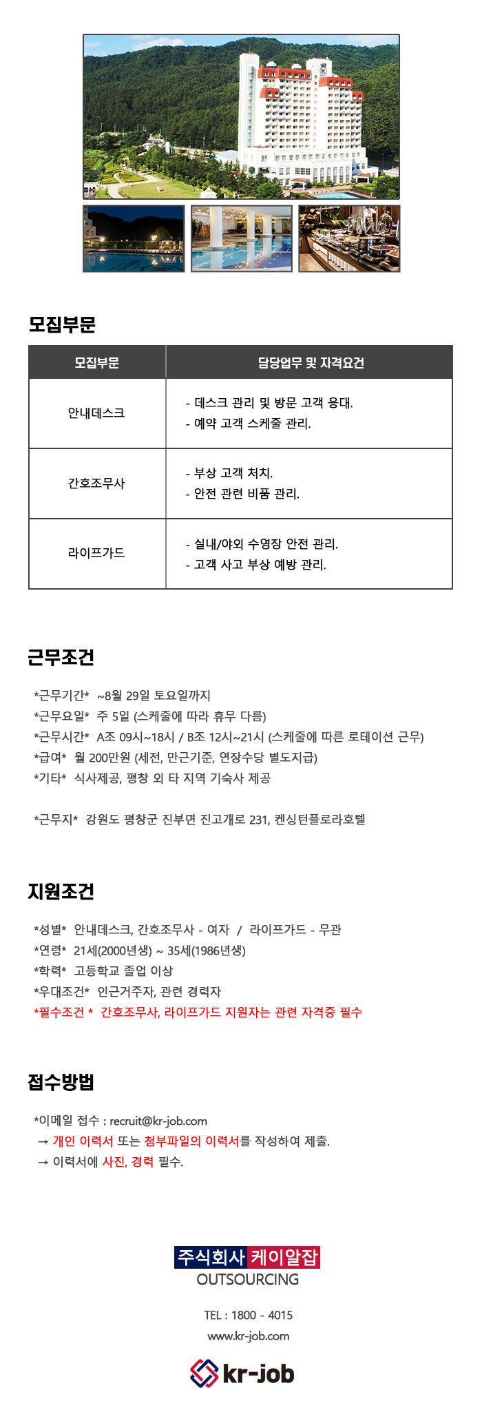 [°¿øµµ Æòâ / Ä˽ÌÅÏÈ£ÅÚ] ¾È³»µ¥½ºÅ©, °£È£Á¶¹«»ç, ¶óÀÌÇÁ°¡µå ´Ü±â Á÷¿ø ä¿ë