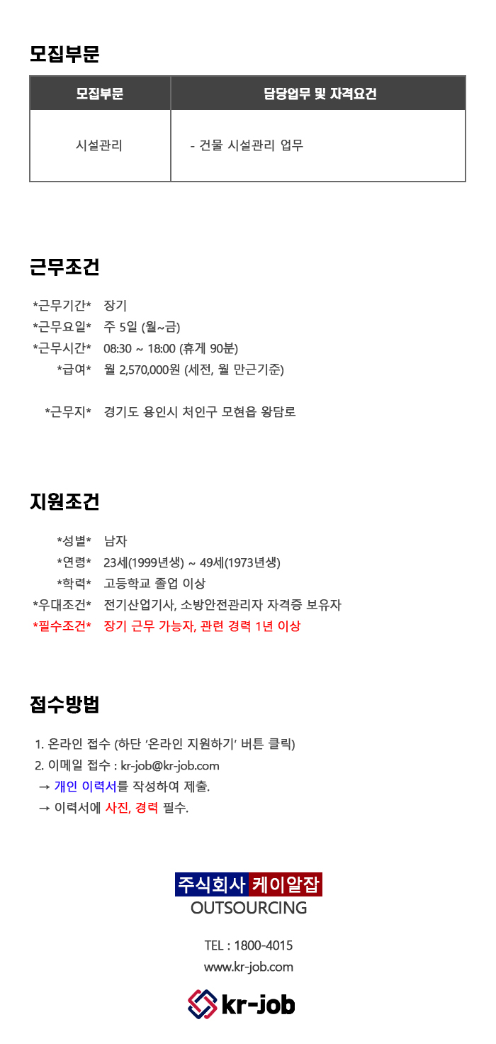 [°æ±âµµ ¿ëÀÎ/¿ù 257¸¸¿ø/ÆòÀÏ] °Ç¹° ½Ã¼³°ü¸®±â»ç ¸ðÁýÇÕ´Ï´Ù.
