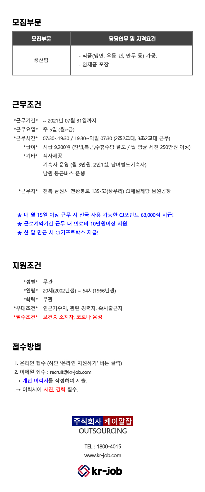 [CJÁ¦ÀÏÁ¦´ç/ÀüºÏ³²¿ø] ½Äǰ »ý»êÆÀ ¸ðÁý