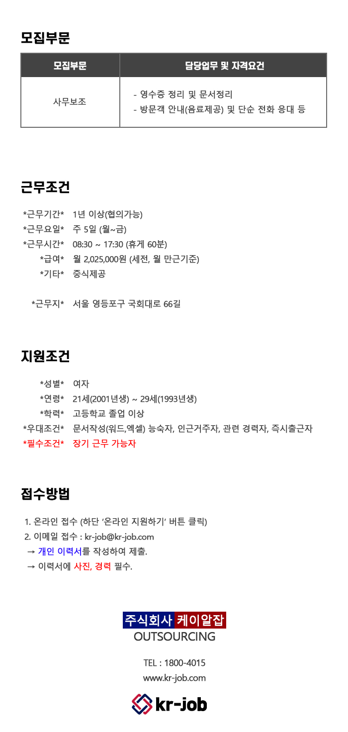 [¼¿ï ¿µµîÆ÷±¸] ´Ü¼ø »ç¹«º¸Á¶ »ç¿ø ¸ðÁý