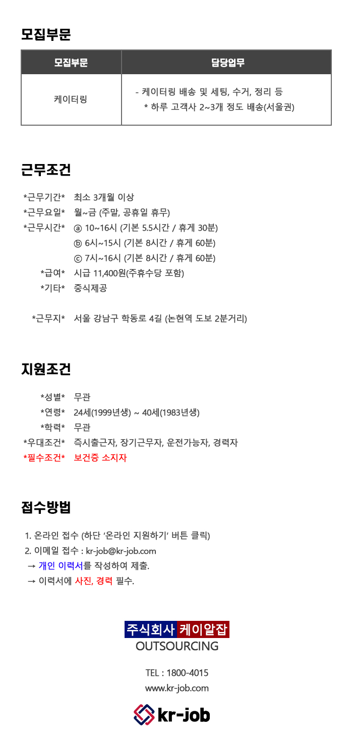 [¼¿ï ÀüÁö¿ª/ÆòÀϱٹ«] ÄÉÀÌÅ͸µ º¸Á¶»ç¿ø ¸ðÁý
