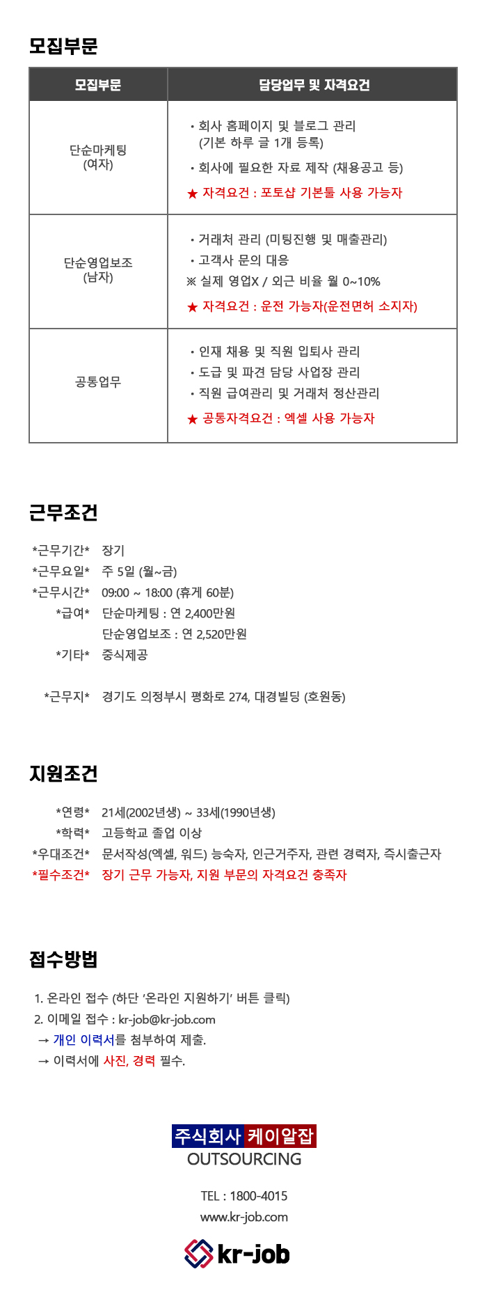 [Á¤±ÔÁ÷ä¿ë/ÀÇÁ¤ºÎ] Àâ¸Å´ÏÀú & ´Ü¼ø¸¶ÄÉÆÃ & ¿µ¾÷º¸Á¶ ´ã´çÀÚ Ã¤¿ë
