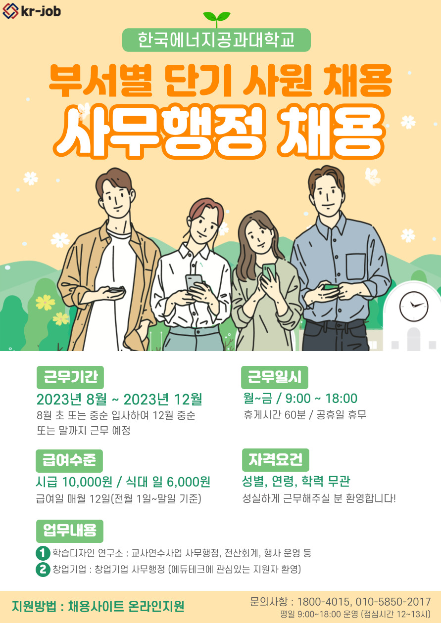 [Àü³² ³ªÁÖ] Çѱ¹¿¡³ÊÁö°ø°ú´ëÇб³ 5°³¿ù °è¾àÁ÷ »ç¹«º¸Á¶ ä¿ëÇÕ´Ï´Ù.